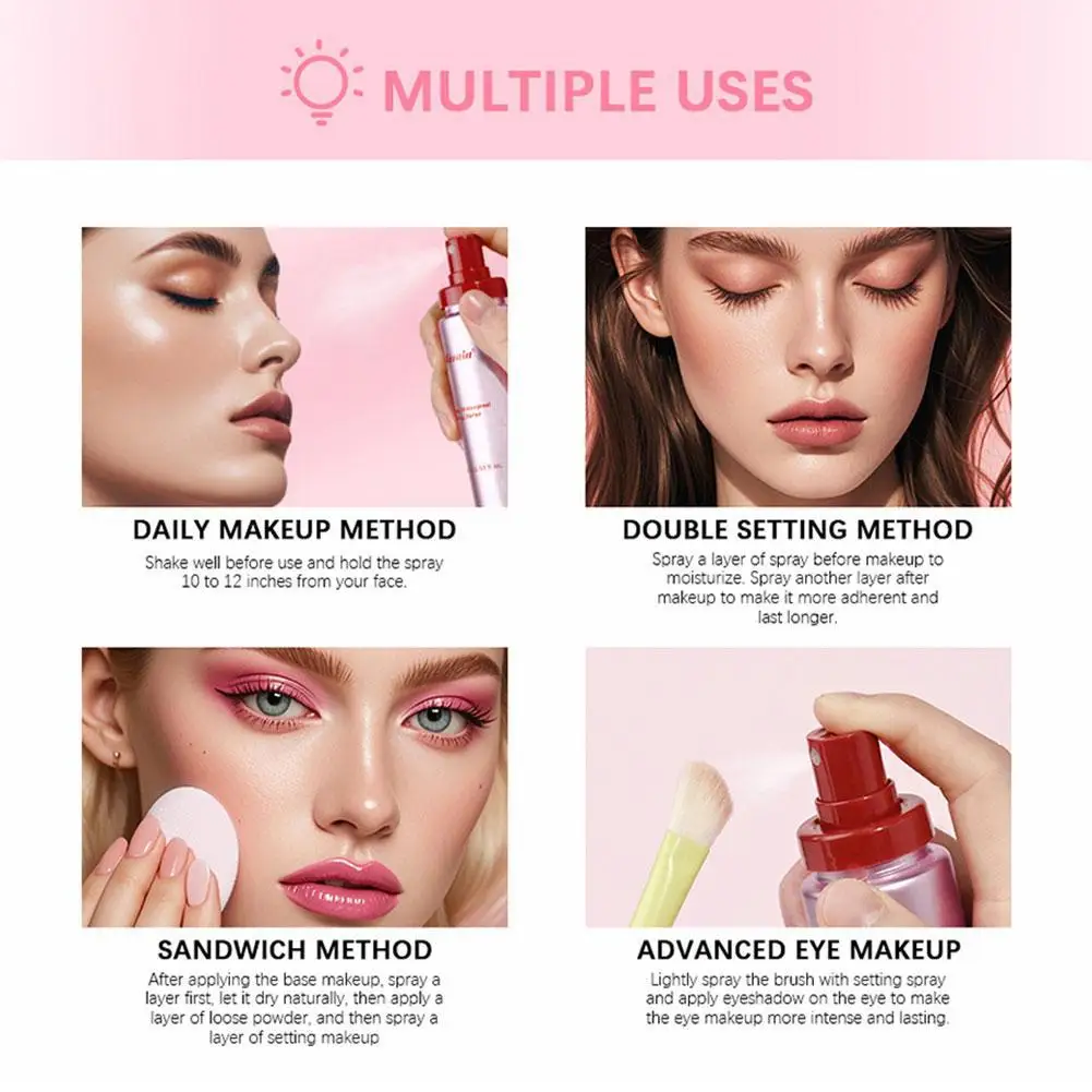 3. Instant fixing: A light spray can instantly fix your makeup, making it last longer and more perfect.