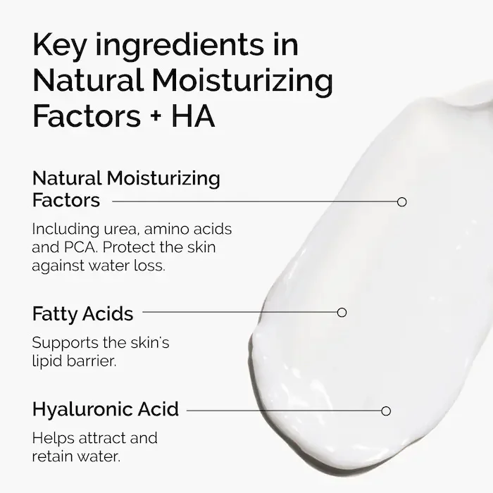 Regular use of Natural Moisturizing Factors + HA promotes smoother, softer skin with improved moisture retention. It is gentle enough for daily use, suitable for all skin types, and can be incorporated into any skincare regimen for enhanced hydration.